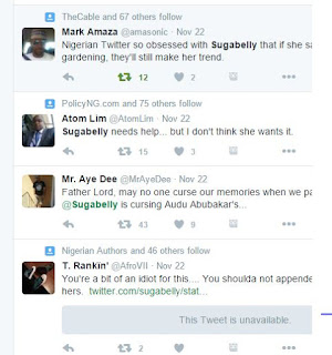 Nigerians took to twitter to react to the allegation a lady with @Sugarbelly twitter handle. She accused the late Audu Abubakar of being a monster and a rapist.